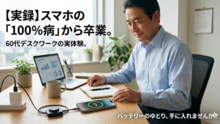 きわめて私的なつれづれ日記 【実録】スマホの「100%病」から卒業。60代デスクワークの私が手に入れた、バッテリーと心のゆとり