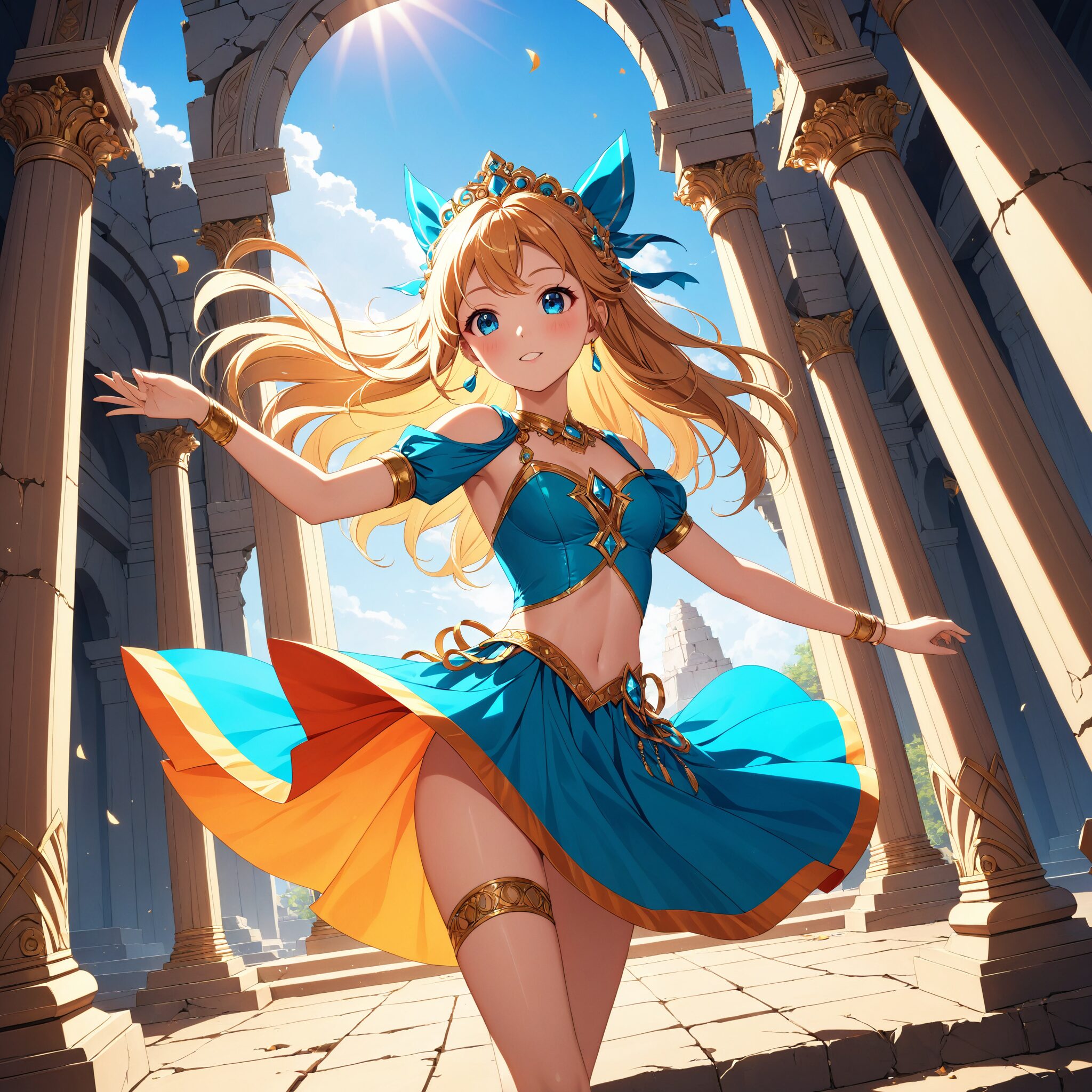 ▼ 「Fooocus」で1024 x 1024の画質で作成したイラスト(神殿跡で舞う女神様)
